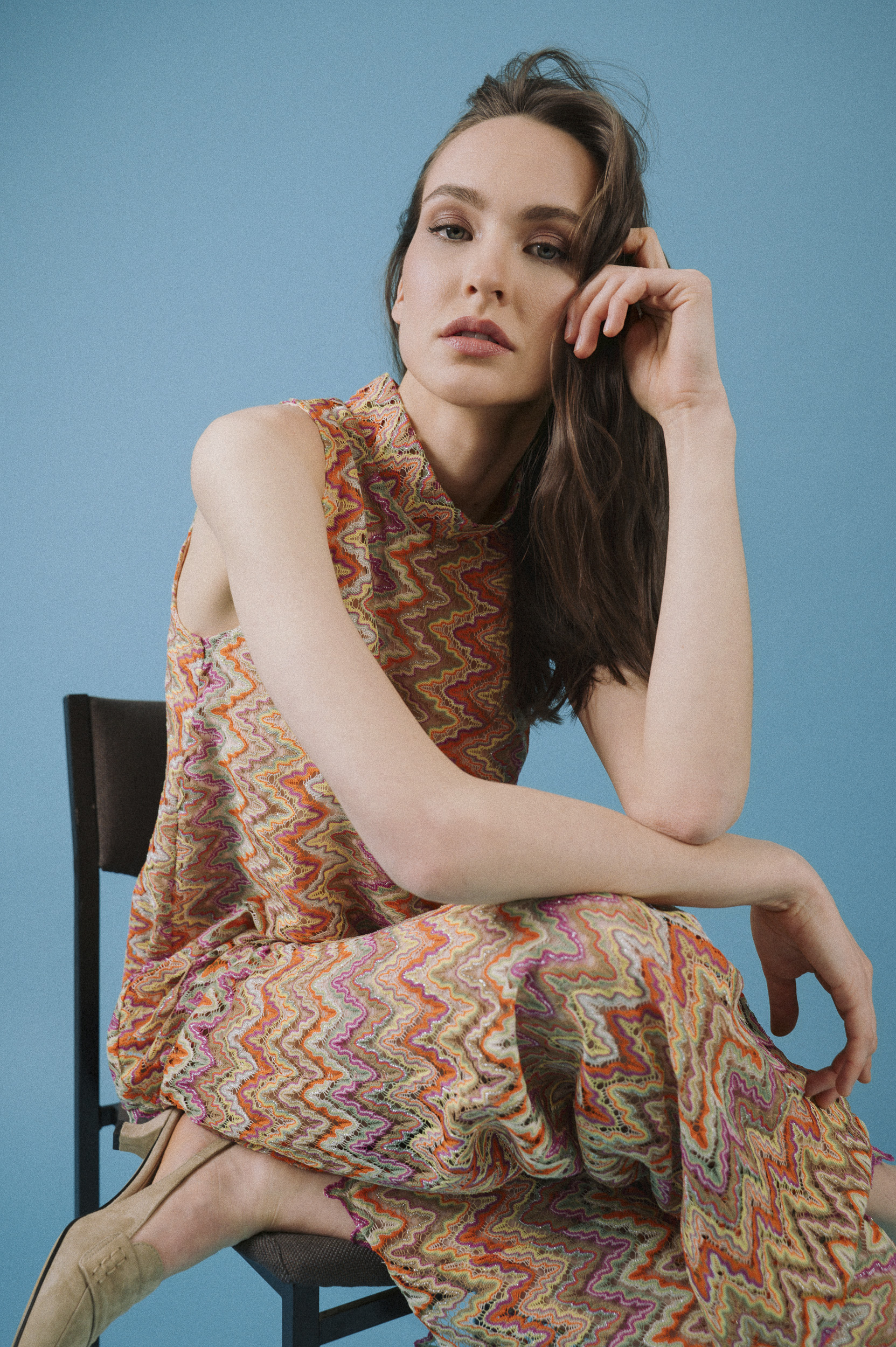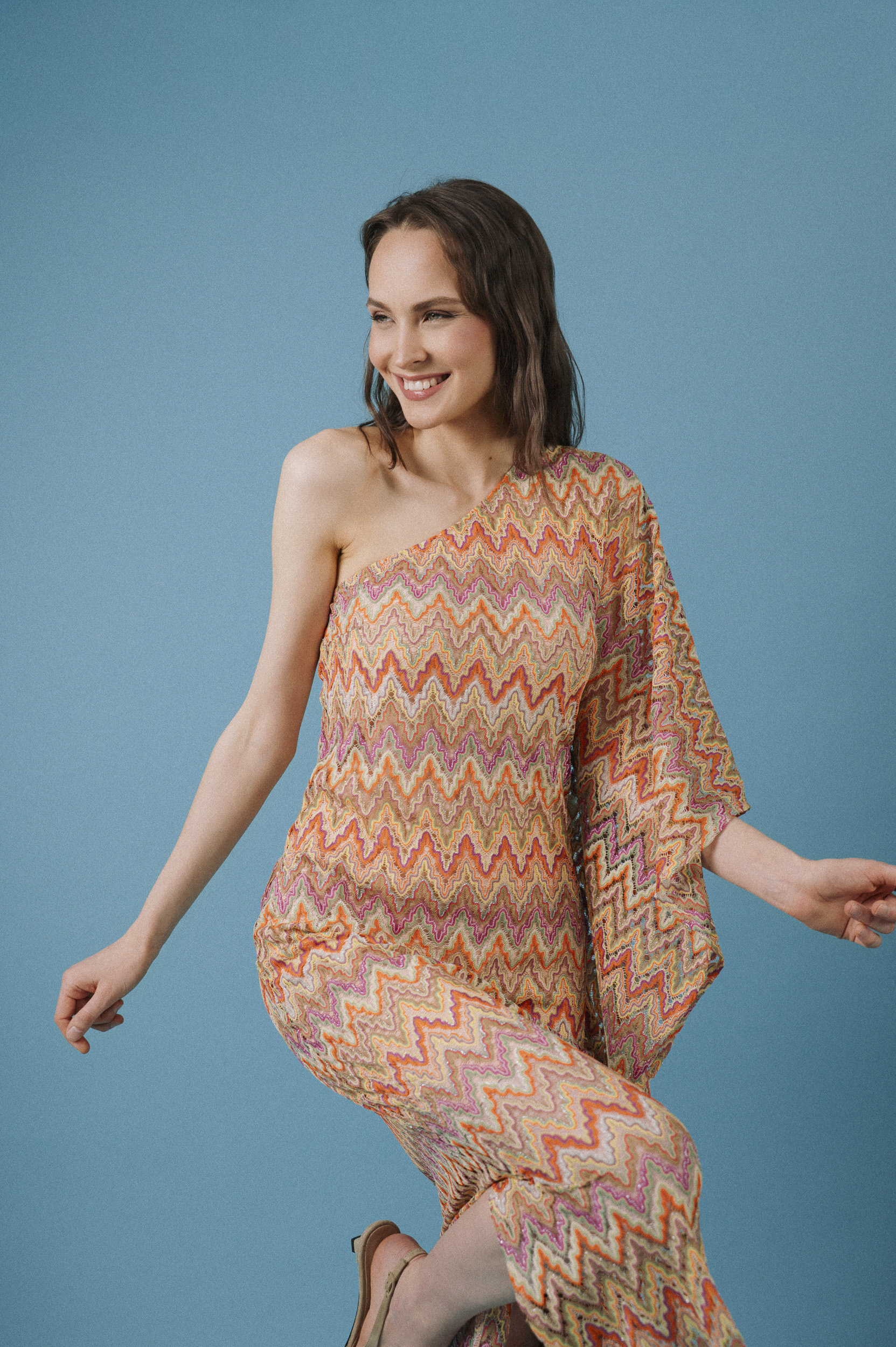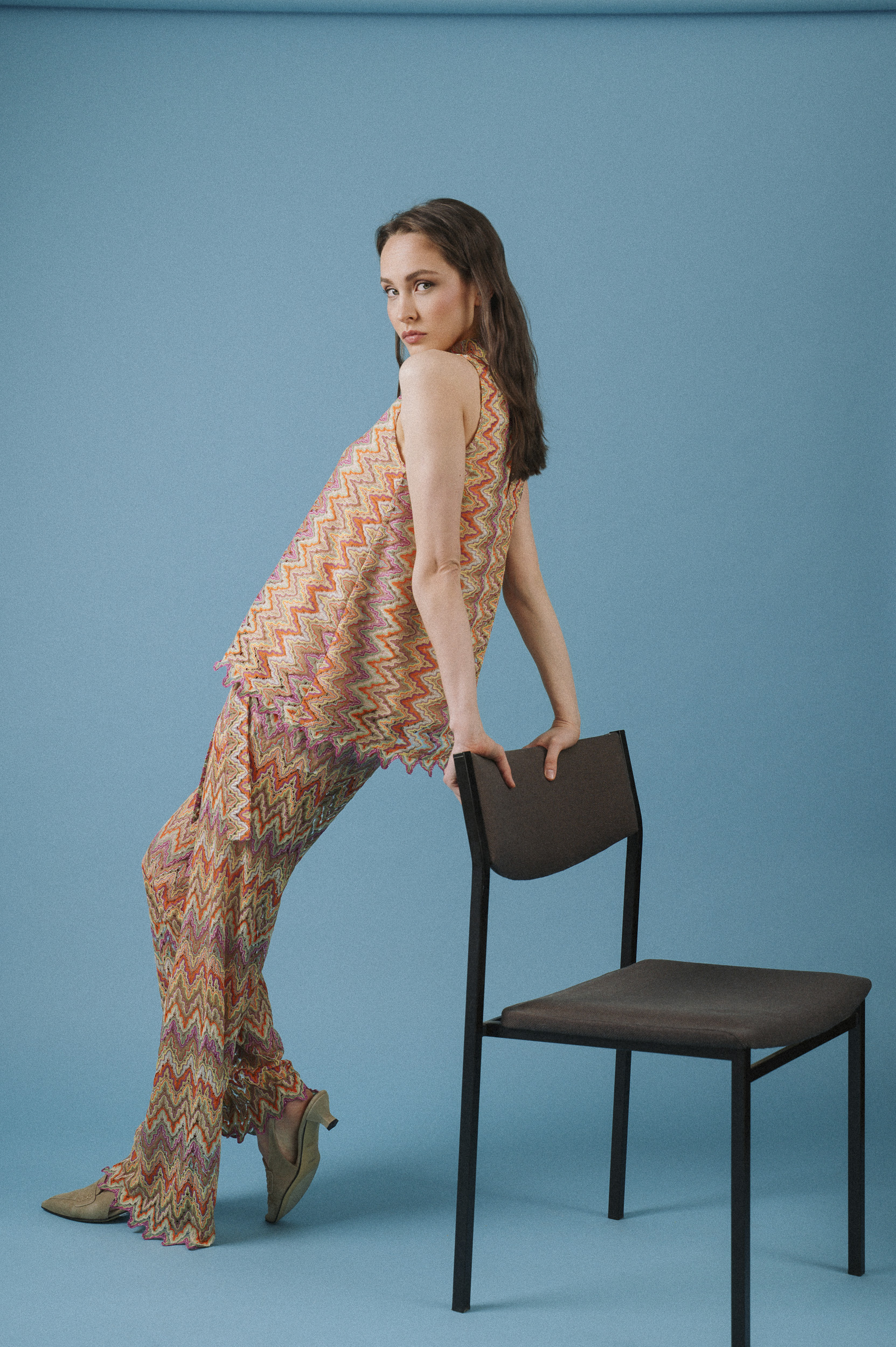 Was diese Looks verbindet, ist die unverkennbare Handschrift von Ana Alcazar: Ausdrucksstarke Zickzack-Muster in warmen, harmonischen Farbnuancen und fließende Materialien, die jede Bewegung unterstreichen. Die femininen Silhouetten mit modernem Twist versprühen eine boho-inspirierte Leichtigkeit, kombiniert mit urbaner Eleganz.