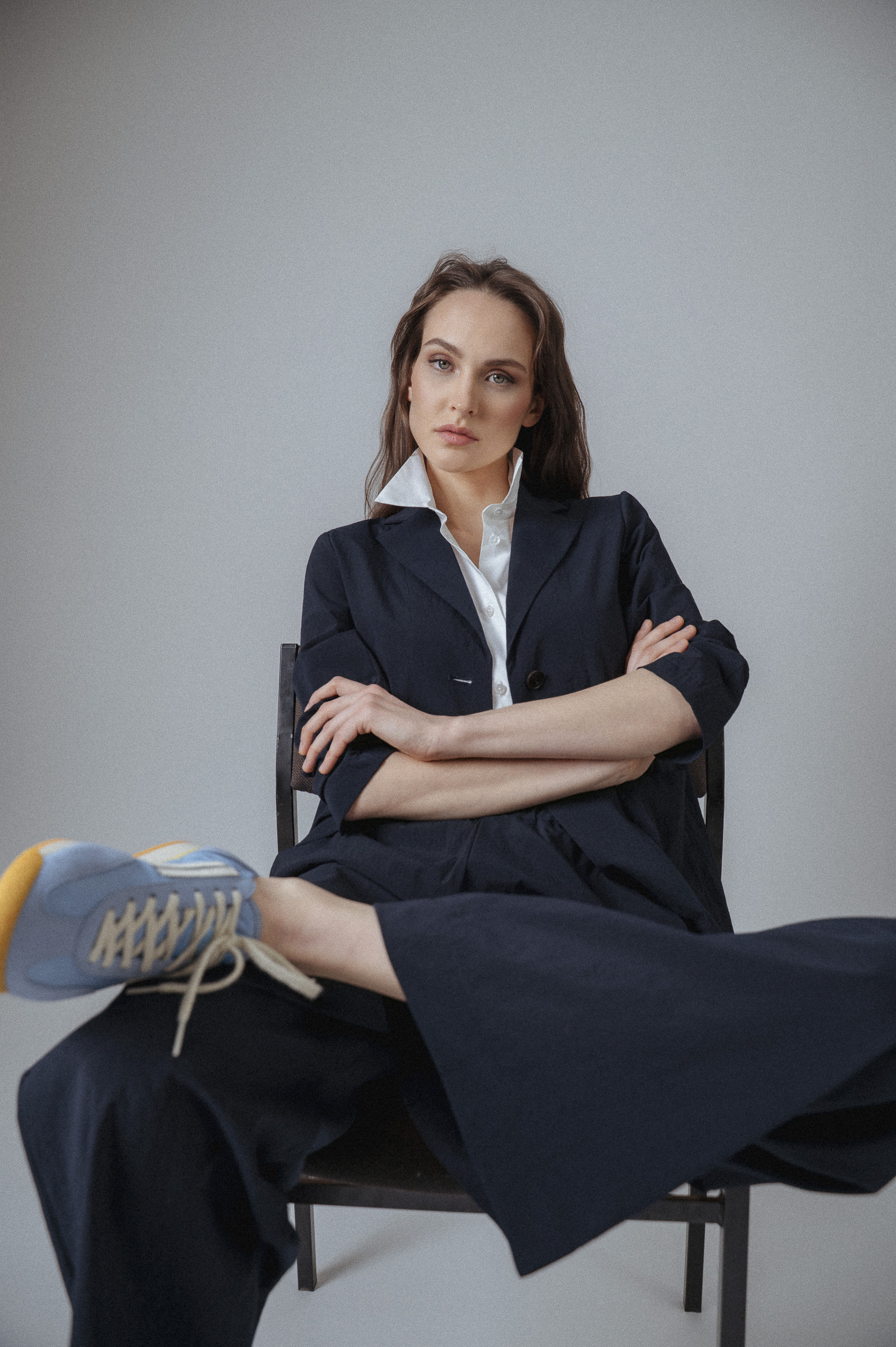 Das Highlight: sportive Sneaker, die dem Outfit eine entspannte, urbane Note verleihen.