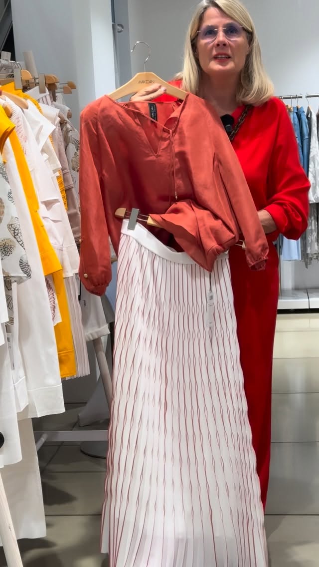 Maria vom Marc Cain Store liebt Farben. Egal ob es eine sportliche Hosenkombi oder elegant ist - Hauptsache farbenfroh.